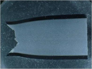 Even partially hot-rolled Cladinox shows a strong metallurgical bond between core and cladding: demonstrated microscopically by the “Kirkendall Effect”: the atomic inter-diffusion of the carbon core into the stainless steel cladding and vice-versa across their common interface. The interface or “bond” containing both materials in its lattice structure grows during hot rolling and spans some 110 microns (0.11mm) in the finished product.